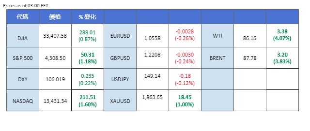 本周伊始,受以色列和巴勒斯坦激进组织哈马斯的中东冲突升级推动,金价飙升近 1%。与此同时,油价显着回升,在一周大幅下跌后上涨逾 4%。投资者因地缘政治紧张局势而感到不安,纷纷转向贵金属和大宗商品寻求庇护。随着交易者寻求避险货币,美元对战争做出了积极反应。美元最初因积极的非农就业报告而走强,但高失业率和平均每小时收入数据不佳抑制了美元上涨。此外,中东战争爆发给股市蒙上阴影,股市在努力应对看跌情绪的同时,仍获得了一些支撑。