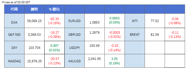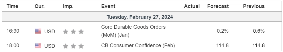 围绕人工智能(ai)的积极情绪和英伟达(Nvidia)的出色表现推动下,美国股市创下历史新高,之后技术性回调,从高位回落。美国联邦储备委员会(Federal Reserve)官员暗示可能会推迟降息,这给投资者带来了谨慎的气氛。对长期加息的预期给市场情绪蒙上了阴影。焦点现在转向即将发布的经济数据,周四的核心个人消费支出价格指数(Core PCE Price Index)可能成为影响市场动态的关键事件