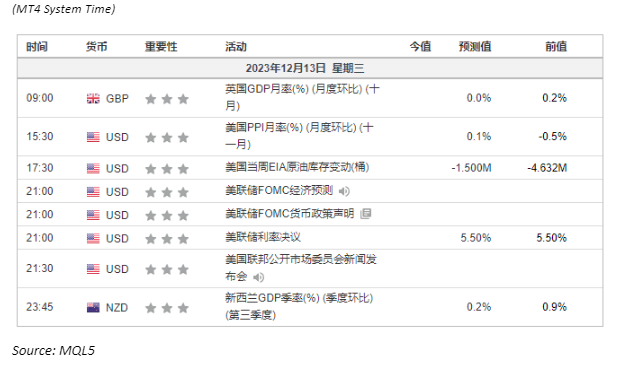 由于投资者热切期待美联储即将出台的货币政策决定,美元指数维持在一个区间内交易。最近公布的消费者价格指数(CPI)数据显示,11月份略有上升,但并未改变美元的整体走势。市场仍在关注美联储的声明,预期将倾向于鸽派立场,这可能影响降息预期,并影响美元在市场中的吸引力。