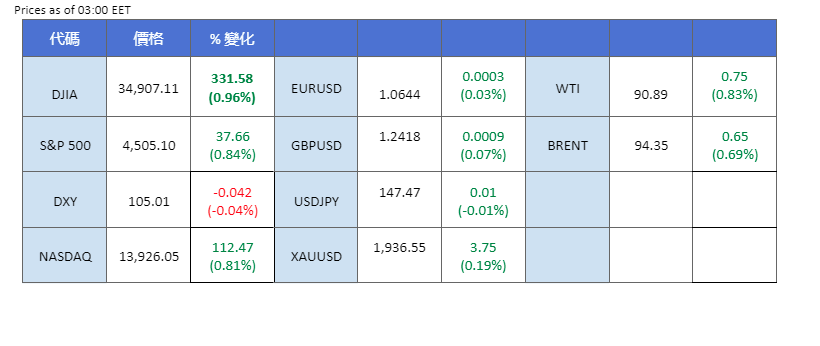 美国股市大幅上涨,主要股指均上涨近1%。道琼斯工业平均指数领涨,上涨 331.50 点。这些涨幅是由有关美国经济的积极数据推动的,包括尽管能源成本不断上涨,但强劲的零售销售和生产者价格数据,从而增强了股市的乐观情绪。投资者越来越相信美联储能够成功实施实现软着陆的货币政策,有效平衡经济衰退和通胀风险。