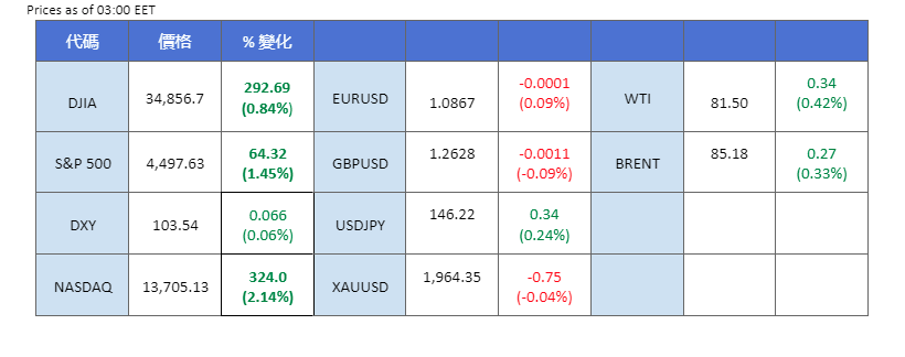 出人意料的是,美国 JOLT 职位空缺报告从之前的 917 万下降至当前的 883 万,表明劳动力市场正在降温。这一事态发展增加了美联储选择在 9 月份再次暂停加息的可能性。因此,美元大幅下跌近 5%,而美国股市收盘乐观。大宗商品受益于美元走软,金价小幅上涨近1%,油价维持在81美元关口之上。此外,Grayscale 最近在 Spot-BTC-ETF 申请中针对美国证券交易委员会 (SEC) 取得的法律胜利在整个加密货币市场引起了反响,推动比特币以令人印象深刻的 8% 飙升至最前沿。