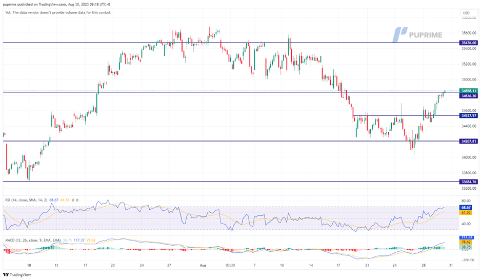 阻力位: 35400.00, 36000.00