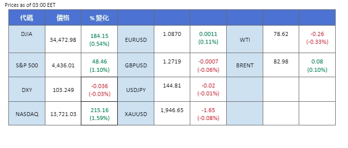 随着美国国债收益率回落,美国股市获得牵引力。另外,科技股在英伟达出色的季度表现的支持下获得了动力。由于对人工智能驱动的计算机芯片的强劲需求,英伟达令人印象深刻的135亿美元收入超出了20多亿美元的预期,为美国科技领域提供更多积极情绪。