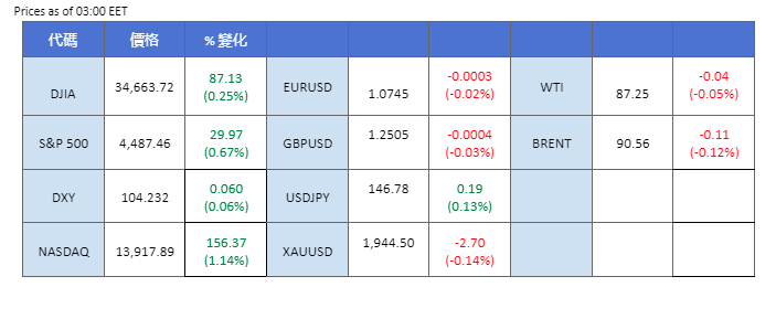 美国股市上涨,原因是市场乐观地认为,美联储(fed)将在本月召开的议息会议上维持当前利率不变。部分投资者预计美联储加息轨迹已接近尾声。与此同时,美国国债收益率下跌,反映出市场认为美联储可能结束其货币紧缩周期的情绪。尽管如此,在对美国关键通胀数据的预期下,市场波动依然存在,投资者仍然需要高度留意美国未来经济数据以及发展,来获得更多交易信号。