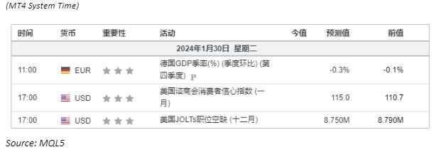 在其他市场,在约旦美军遭受致命袭击后,黄金和油价均保持在高位。这种地缘政治的发展加剧了紧张局势,影响了这些商品。此外,定于明天发布的中国采购经理指数(PMI)数据预计将对油价产生影响,交易者将密切关注经济指标以了解潜在的市场走势。
