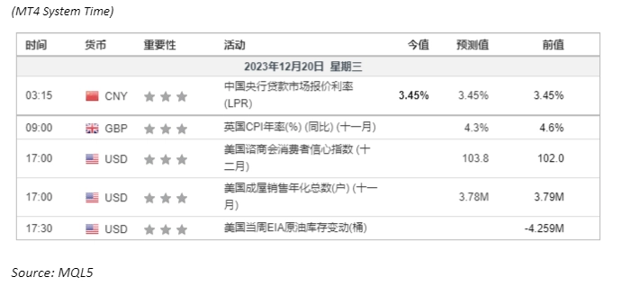 美国股市持续看涨,尤其是道指领先,昨天上涨超过 200 点。该指数12月份已实现近4.5%的大幅上涨。美联储的鸽派立场成为股市走高的催化剂。此外,美国国债收益率表现不佳也加剧了市场的风险偏好。