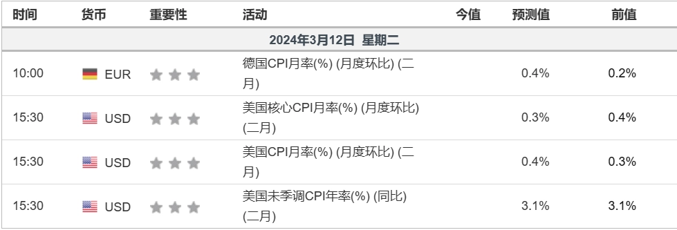 由于美国市场昨日缺乏催化剂,美元指数表现稳定。 投资者的注意力现在集中在即将发布的 2 月份消费者价格指数 (CPI) 数据上。 正如主席杰罗姆·鲍威尔和其他主要官员在最近的声明中所强调的那样,这份重要的通胀报告将会影响美元波动,对美联储 2024 年的预期利率决定具有重大影响。