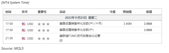 澳元兑美元保持强势,特别是在澳大利亚储备银行 (RBA) 11 月会议纪要发布后。澳洲联储承认,如果利率保持不变,通胀可能持续下去,这被市场解读为强硬立场,从而提振了澳元。与此同时,美元仍然受到围绕美联储利率可能已达到峰值的猜测的影响。