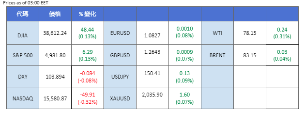 在美联储(fed)公布1月份会议纪要后,投资者开始逢低买入,道琼斯指数小幅走高。政策制定者发出的不急于转向降息的信号,与对通胀风险的担忧不约而同。美国国债收益率维持在日内高点附近,突显出在强于预期的企业业绩推动下,市场对股市的信心。受中东地缘政治紧张局势加剧、油价持续上涨的支撑,能源股领涨大盘。