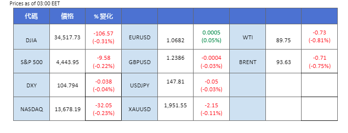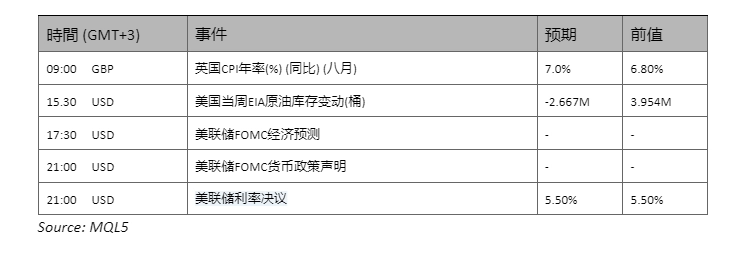 在今天备受期待的联邦公开市场委员会 (FOMC) 利率决定发布之前,市场波动仍然相对温和。美元指数维持在105美元关口上方,反映出市场对今年晚些时候再次加息的预期,而今天的宣布可能会带来暂时的停顿。值得注意的是,澳大利亚和新西兰的债券收益率已飙升至 2007 年以来的最高水平。债券收益率的上升可能会提振各自货币的强势。此外,中国维持基准贷款利率不变的决定也产生了显着影响,导致油价大幅下跌,WTI原油昨日下跌1.65%。