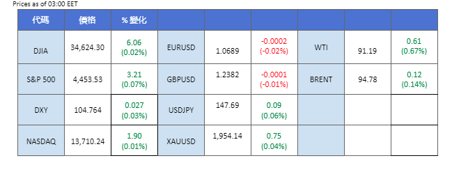 在动荡加剧的一周中,美国股市在苹果公司股价上涨的推动下表现出了弹性。与iPhone 14的初始需求相比,苹果公司令人印象深刻的1%增长归功于对其新推出的iPhone 15的强劲需求,尤其是价格较高的iPhone Pro和Pro Max机型。尽管如此,投资者仍将密切关注包括美联储(fed)在内的主要央行即将发布的货币政策声明,以寻找进一步的方向性线索。