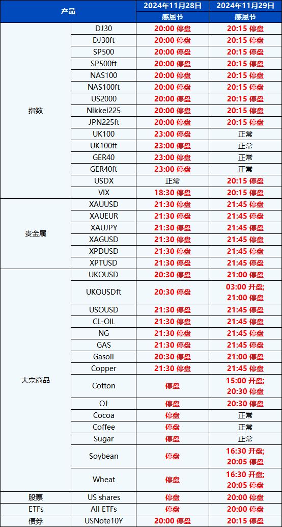 您好,受即将到来的感恩节假期影响,PU Prime的交易时间将有所调整。