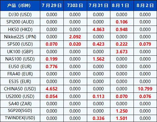 请注意, 以上数据仅供参考,所有数据均以MT4/MT5软件实际执行情况为准。