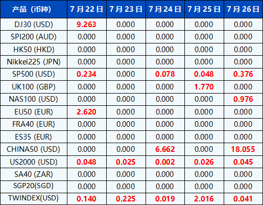 请注意, 以上数据仅供参考,所有数据均以MT4/MT5软件为准。