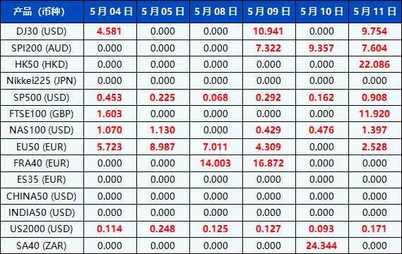 请注意, 以上数据仅供参考,所有数据均以MT4/MT5软件为准。