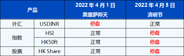 您好,受即将到来的奥里萨邦天以及清明节假期影响,PU Prime的交易时间将有所调整。