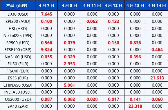 请註意, 以上数据仅供参考,所有数据均以MT4/MT5软件为准。