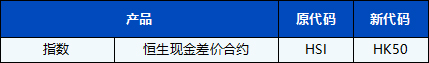 若您在代码变更的前一个交易日2022年4月15日持仓过夜,您持仓中的代码将于2022年4月18日替换为HK50。