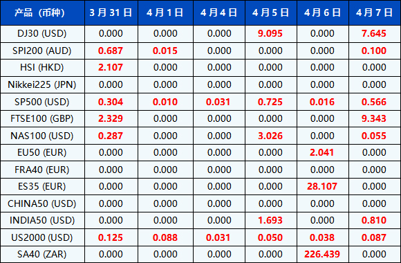 请注意:在市场流动性下降情况下,点差可能会较正常平均水平显著扩大。