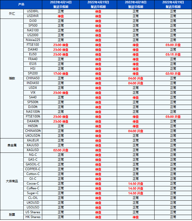 您好,受即将到来的复活节假期影响,PU Prime的交易时间将有所调整。