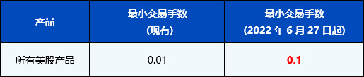 注意:若您于生效日期前一个交易日2022年6月24日持仓过夜且手数小于0.1手,您的持仓中的订单将于2022年6月27日以前一个交易日的日终价格(EOD)强制平仓。
