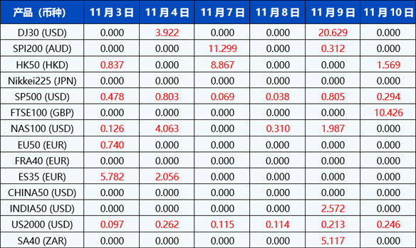 请注意, 以上数据仅供参考,所有数据均以MT4/MT5软件实际执行情况为准。