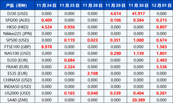 请注意, 以上数据仅供参考,所有数据均以MT4/MT5软件实际执行情况为准。