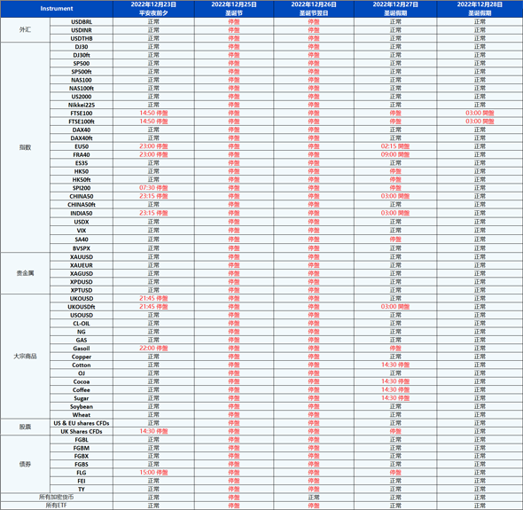 您好,受即将到来的圣诞节日影响,PU Prime的交易时间将有所调整。