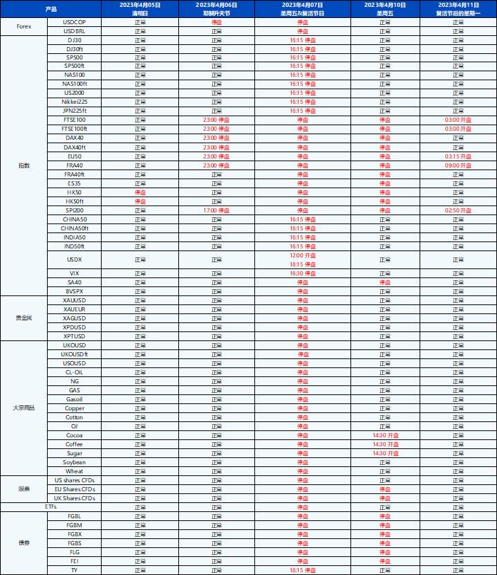 您好,受即将到来的4月份假期影响,PU Prime的交易时间将有所调整。