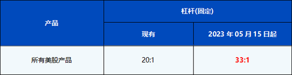 您好,为进一步提升PU Prime的竞争力和优化客户的交易体验,从2023年05月15日起,所有美股产品的杠杆将进行调整。