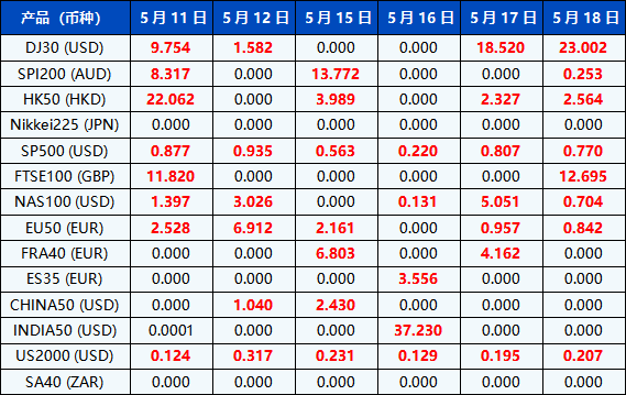 请注意, 以上数据仅供参考,所有数据均以MT4/MT5软件实际执行情况为准。