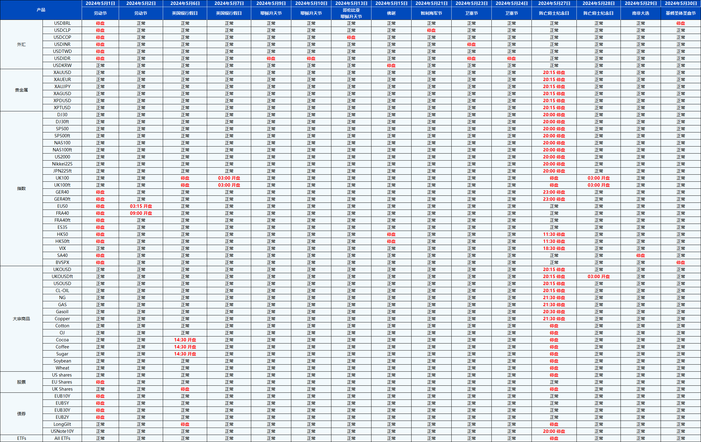 您好,受即将到来的 5月份假期影响,PU Prime的交易时间将有所调整。