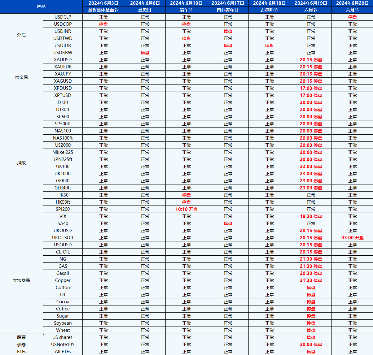 您好,受即将到来的 6月份假期影响,PU Prime的交易时间将有所调整。