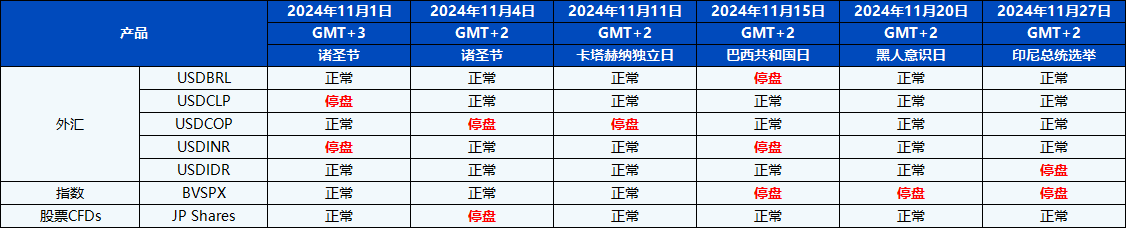 您好,受即将到来的 11月份假期影响,PU Prime的交易时间将有所调整。