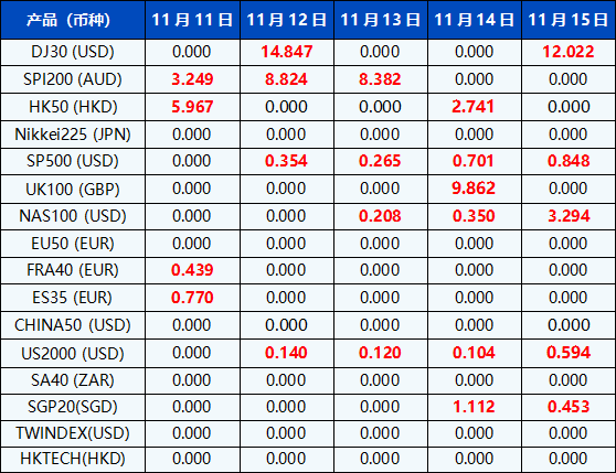 请注意, 以上数据仅供参考,所有数据均以MT4/MT5软件实际执行情况为准。