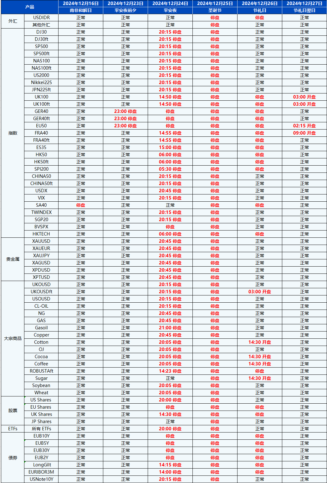 您好,受即将到来的12月份假期影响,PU Prime的交易时间将有所调整。