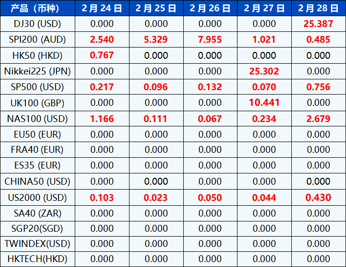 请注意, 以上数据仅供参考,所有数据均以MT4/MT5软件实际执行情况为准。