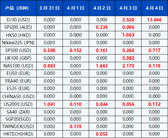 请注意, 以上数据仅供参考,所有数据均以MT4/MT5软件实际执行情况为准。