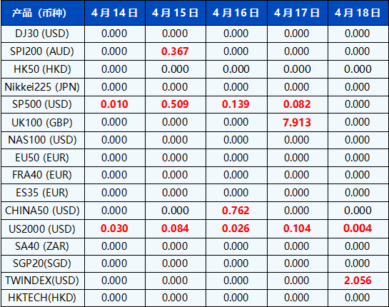 请注意, 以上数据仅供参考,所有数据均以MT4/MT5软件实际执行情况为准。
