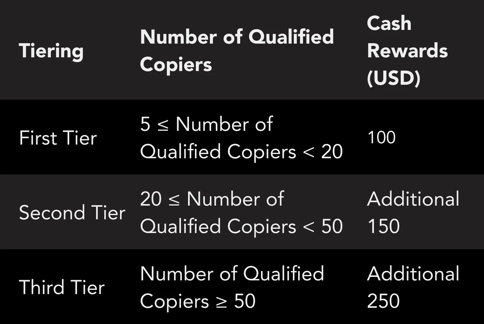 8.Copiers may follow multiple Signal Providers and copy from their public trades simultaneously. However, in this promotion, only a maximum of 3 unique Signal Providers (based on fulfilled sequence) will be recorded under each qualified copier.