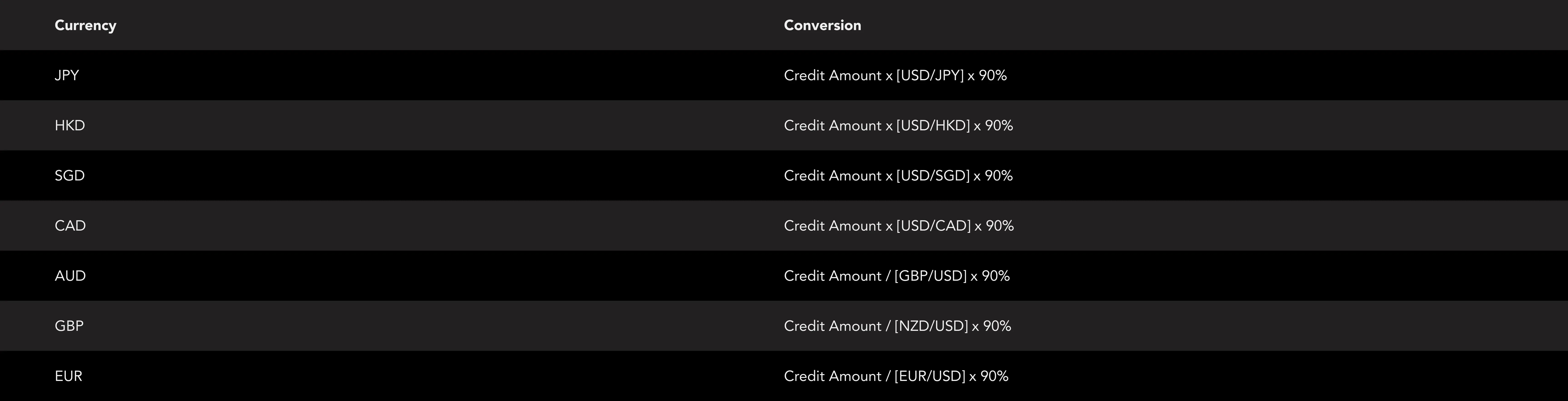 11.If the client’s account is not denominated in USD, we will convert the cash rewards amount using the following method: