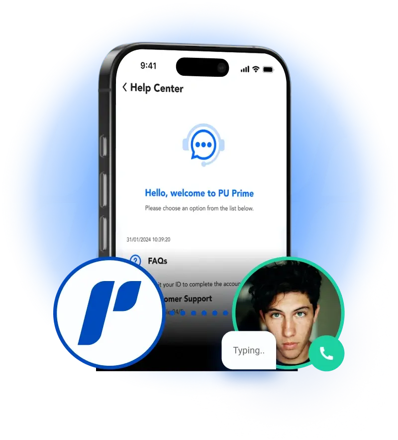 Ние сме с вас във всеки момент, пет дни в седмицата. Получавайте ненадмината поддръжка в приложението и извън него, когато търгувате с PU Prime.